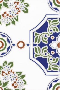 En primer lugar, el azulejo TRIANA. Un azulejo que destaca por su combinación de los colores blanco y azul, con presencia de otros tonos como el rojo o el verde, que hacen a este azulejo único y especial, perfecto para aportar luz al ambiente exterior de su hogar gracias a la predominación del blanco que hará de reflectante de los rayos del sol. El azulejo TRIANA tiene la opción de combinarlo con el azulejo Liso Azul Valencia.