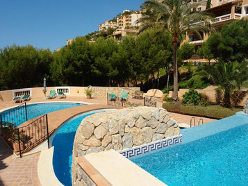 El color azulado de la gran parte de las piscinas que vemos a lo largo de nuestra vida se debe a la absorción selectiva de la luz del sol del agua. De este modo, el agua de nuestra piscina recibe los rayos de luz, ésta absorbe primero la luz roja y ultravioleta y después los colores amarillos, verdes y violetas. Por tanto, la luz azul, es el color que menos absorbe el agua, y por tanto, del color con el que se queda nuestra piscina. Tu piscina soñada con Togama.