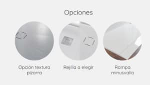 6 colores disponibles: blanco, negro, crema, arena, cemento, antracita