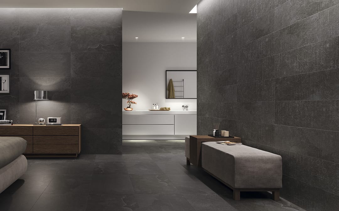 Pavimento porcelánico serie Almería. Diseña tu espacio con este elegante pavimento de gres porcelánico con un acabado pizarra en cualquiera de estos tres colores y combínalo con su cenefa si el uso es para revestimiento de pared.