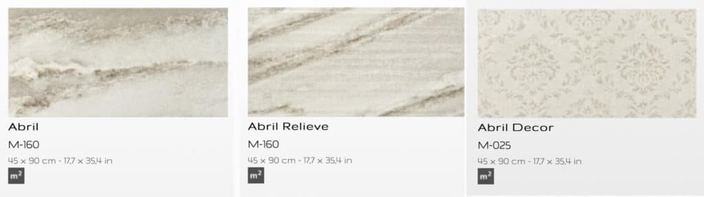 Un aspecto que también puede hacernos decantar nuestra opinión a favor de esta Serie, es su textura. Nuestro proveedor Cristacer nos ofrece 3 modelos entre los que destacamos «Abril Decor», ya que está más orientado a colocarlo sobre soportes verticales y nos ofrece unas texturas diferentes que nos servirán, a su vez, de decoración.
