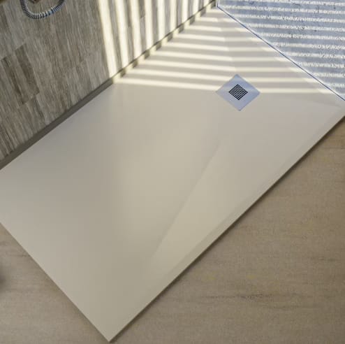 Los colores dominantes se inspiran en la tierra: beiges suaves, ocres, marrones arenosos y los llamados tonos greige (una fusión entre gris y beige) reemplazan los blancos impolutos. Esta paleta más humana y envolvente crea una base perfecta para materiales naturales como la madera, la piedra o las resinas con acabado mate, ampliamente utilizadas en productos como encimeras o platos de ducha. Cuando Decoplat ofrece colores como “Crema R1013” para sus platos de ducha (además de blanco, negro, arena, antracita)¹, no está simplemente diversificando —está alineándose con esta paleta envolvente.